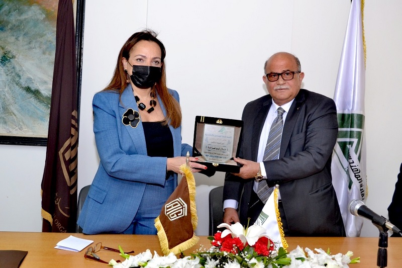 وقدم الدكتور سعودي درعا للدكتور أبوغزاله تسلمته الأستاذة اللباد تقديراً للجهود المقدمة في تطوير المعرفة
