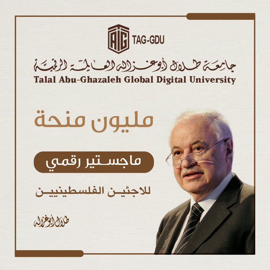 جامعة طلال أبوغزاله العالمية الرقمية تستمر في استقبال طلبات "المنحة المليونية" لدعم الفلسطينيين