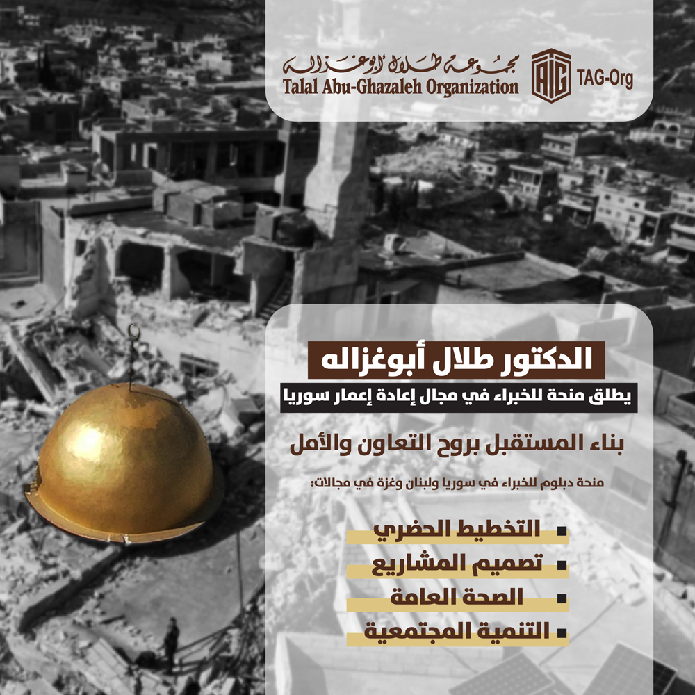 طلال أبوغزاله يطلق منحة للخبراء في مجال إعادة إعمار سوريا: بناء المستقبل بروح التعاون والأمل